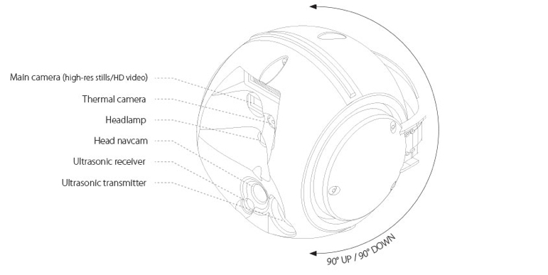 El cabezal TripleView posee un rango de movimiento vertical de 180 grados, zoom digital de 6x, estabilización de gimbal activo y un campo de visión sin obstrucción debido a su diseño de marco de envolvente. El albris es capaz de alcanzar un GSD de hasta 1 mm a una distancia superficial de 6 m.